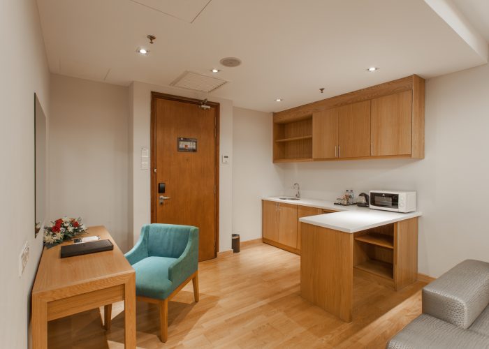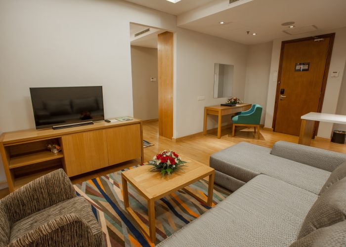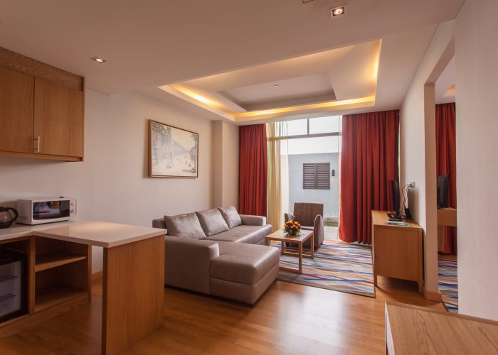 Among the features in the rooms are the spacious sitting area, comfortable plush chairs and sofa, a kitchenette with tableware, minibar and a microwave oven. This Premier Suite is complete with complimentary High Speed Internet Access (HSIA).
