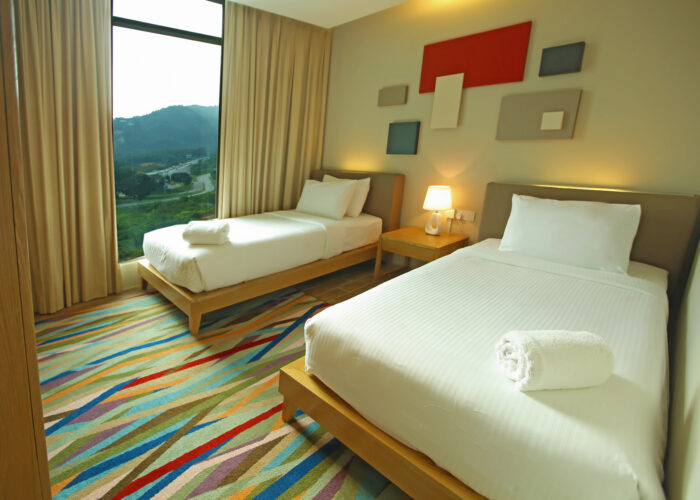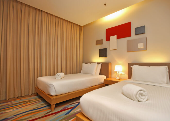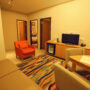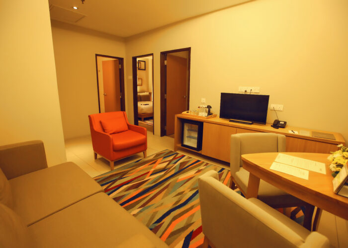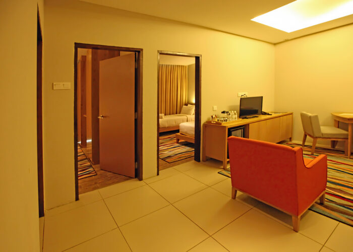 This Family Suite spreads across 56 sqm with a King bed and two Twin beds in separate bedrooms, families can stay close while enjoying privacy in the comforts of their own space. A separate living room provides the extra space for both adults and kids. This Family Suite is complete with complimentary High Speed Internet Access (HSIA).